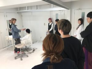 卒業1年目の卒業生が、カットのデモンストレーションを
